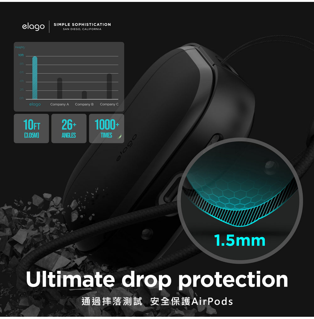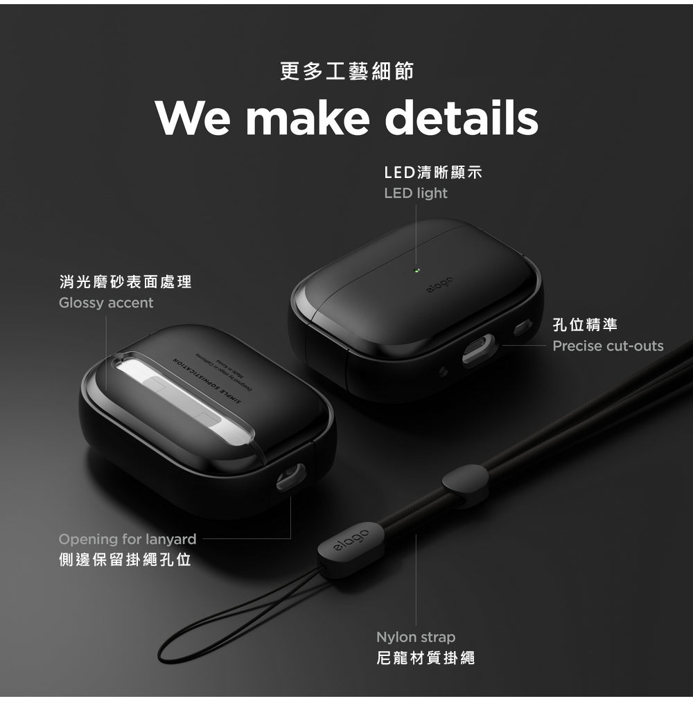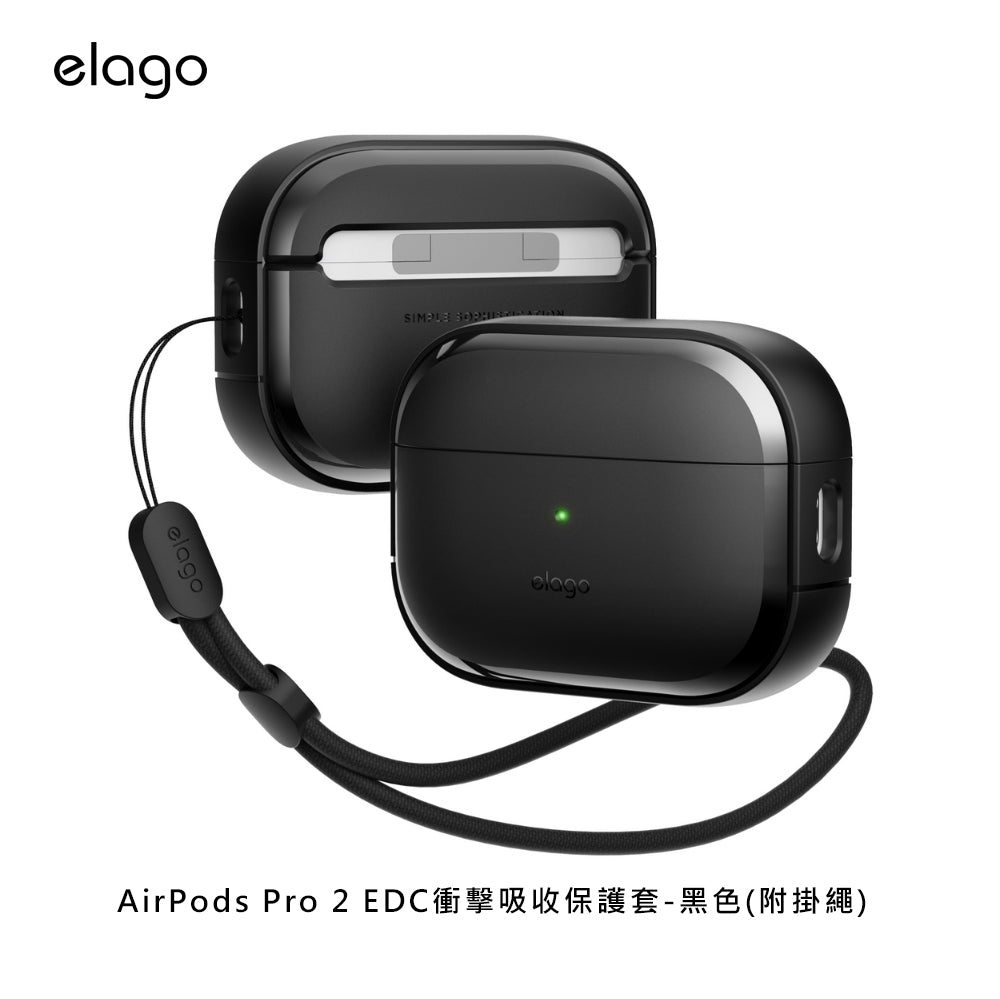 <elago>AirPods Pro 2 EDC衝擊吸收保護套-黑(附掛繩)